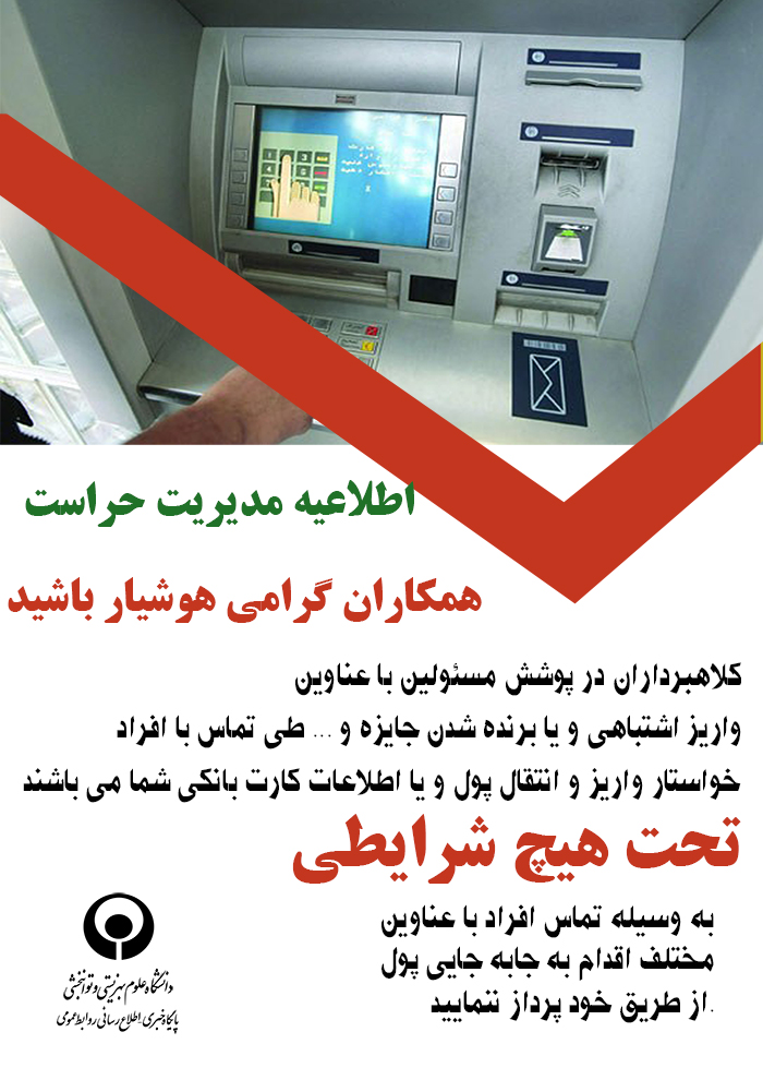 اخبار > اطلاعیه مدیریت حراست : کلاهبرداری در پوشش مسئولین با عناوین واریز اشتباهی