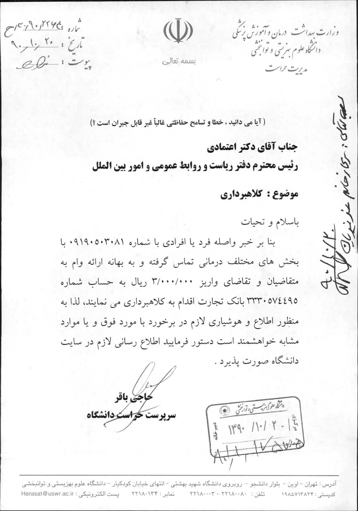 اخبار > سرپرست حراست دانشگاه اعلام کرد.