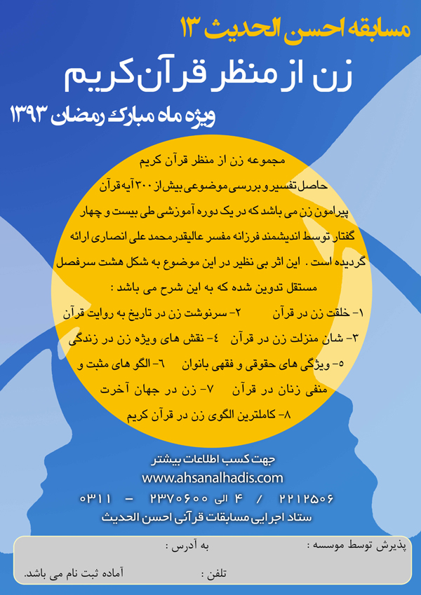 اخبار > مسابقه احسن الاحدیث 13/ زن از منظر قرآن کریم/ ویژه ماه مبارک رمضان 1393