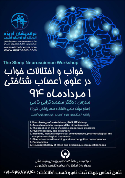 کارگاه تخصصی خواب و اختلالات خواب در علوم اعصاب، با همکاری موسسه نواندیشان آویژه و دانشگاه علوم بهزیستی و توانبخشی ، اول مردادماه در سالن شاملو دانشگاه علوم بهزیستی  برگزار می شود.