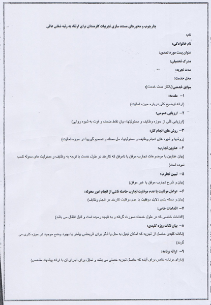 به گزارش وبدای دانشگاه علوم بهزیستی و توانبخشی ، در اجرای تبصره دو ماده ده ضوابط اجرایی ارتقای طبقه و رتبه شغلی وهمچنین بخشنامه شماره 891/212/د مورخ 15/5/91 معاونت توسعه مدیریت ومنابع وزارت بهداشت ،درمان وآموزش پزشکی ،جهت ارتقاء به رتبه عالی ،علاوه بر دارا بودن شرایط مندرج در بند "د" ماده 13 ضوابط اجرایی ارتقاء طبقه ورتبه شغلی ،تهیه حداقل بیست صفحه مستندات تجربی در چارچوب تعیین شده (به پیوست ضمیمه می باشد)توسط کارکنان کفایت نموده والزامی به ارائه 100 صفحه نمی باشد