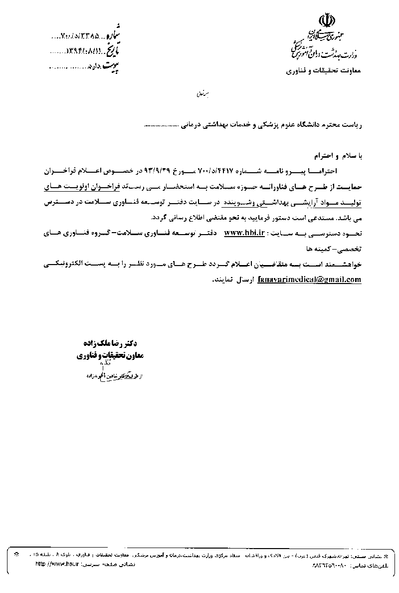 اخبار > معاون تحقیقات و فناوری وزارت بهداشت اعلام کرد: فراخوان اولویت های تولید مواد آرایشی و بهداشتی و شوینده