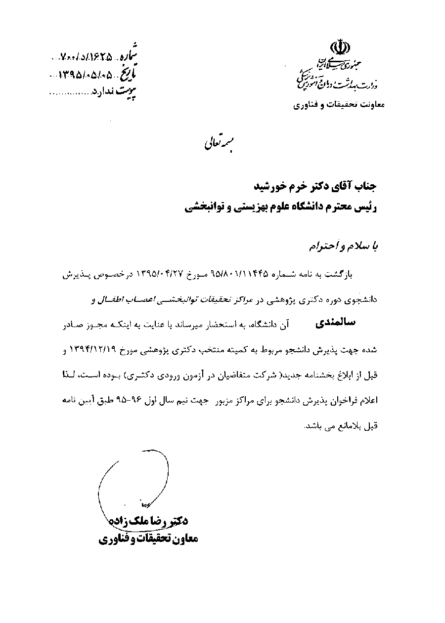 اخبار > معاونت آموزشی و تحقیقات و فناوری وزارت بهداشت، درمان و آموزش پزشکی اعلام کرد: تغيير در نحوه پذيرش دانشجو دكتري پژوهشي (By Research)